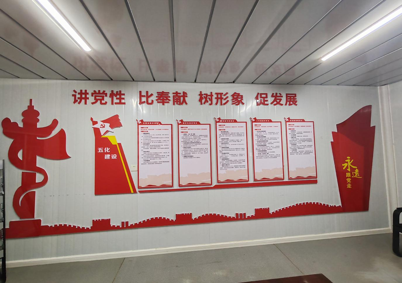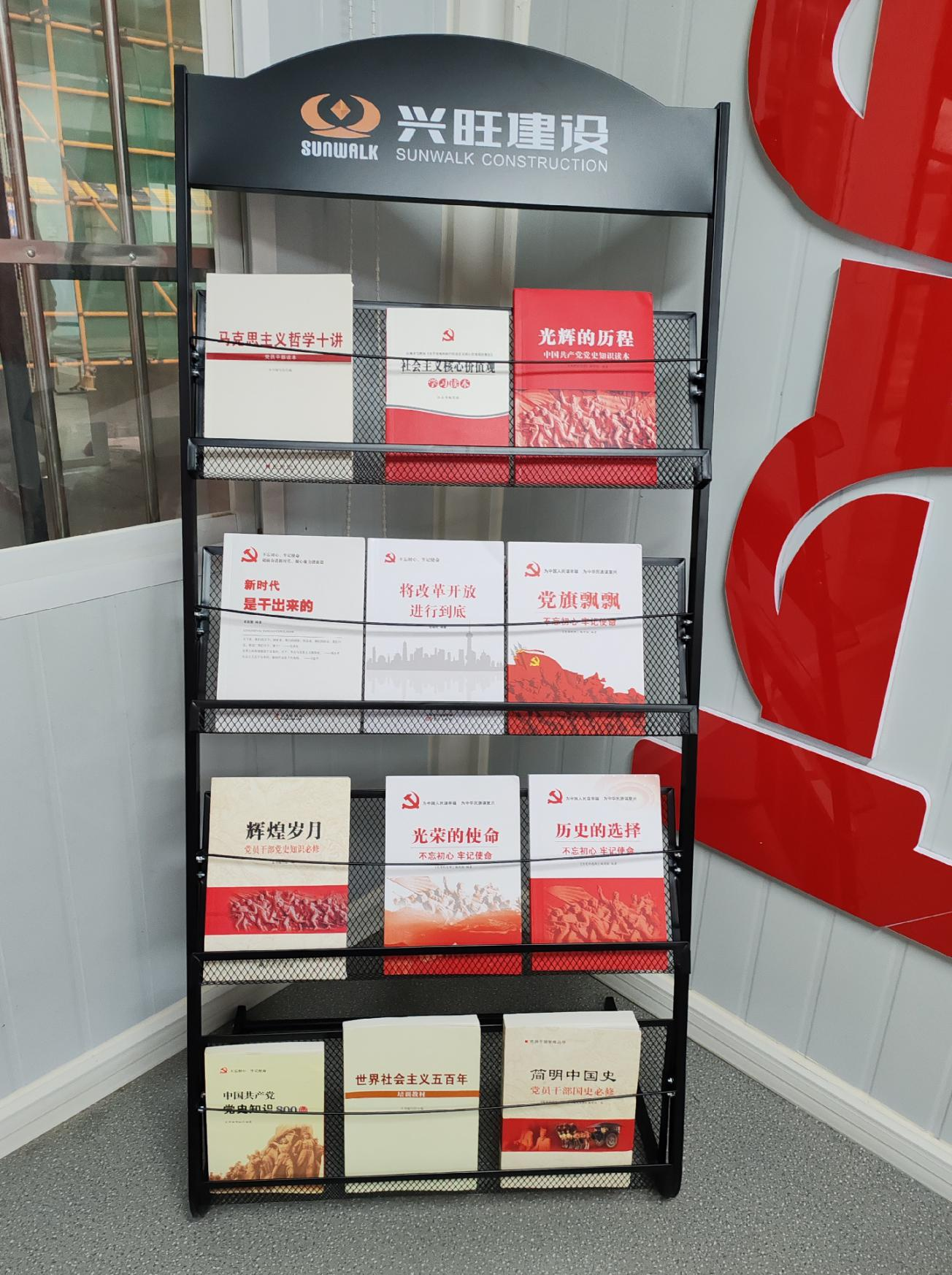 4、设立党史文化书报架,组织党员、项目部管理人员及施工人员学习党史,了解中国共产党自1927年成立以来的光辉历程,以此形成强大的凝聚力和向心力更好的推动项目安全、优质、高效的完成各项生产目标。