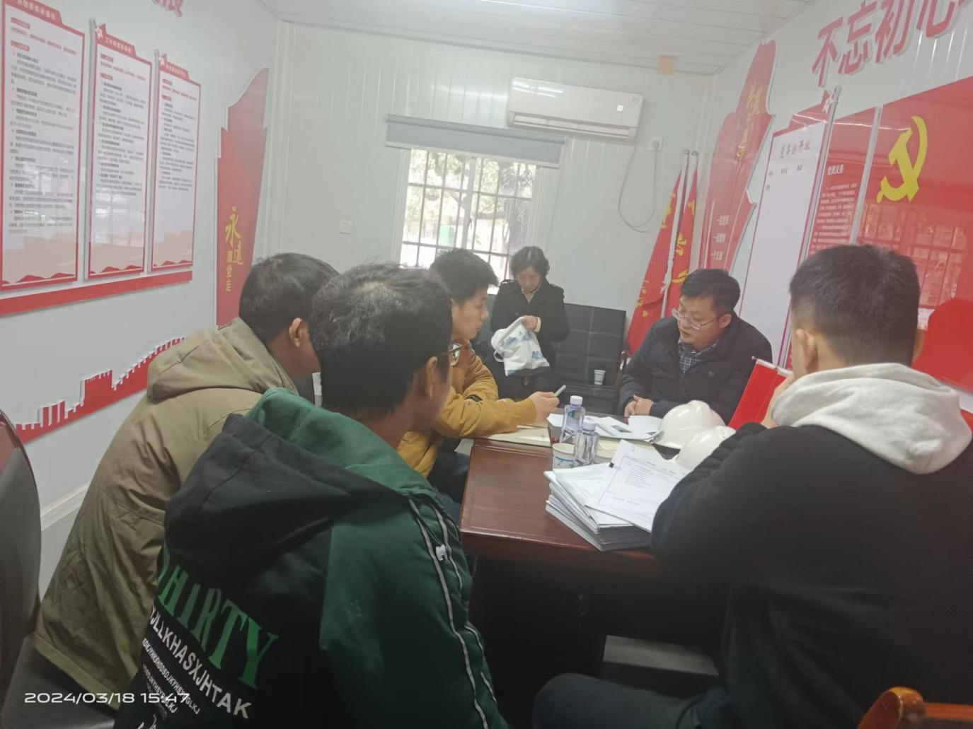 5、项目部定期开展“三会一课”学习活动,通过召开支部党员会、支部委员会、党小组会和主题党课,积极打造标杆党支部。制定年度学习教育计划、每周一召开项目推进会等措施进一步实现“党员带头学、团员跟着学、管理人员一起学”。同时坚持落实“三会一课”,坚持以思想建设为核心、以制度建设为保障,把党支部建设成为政治坚定、求真务实、开拓创新、团结协作的坚强战斗保垒。
