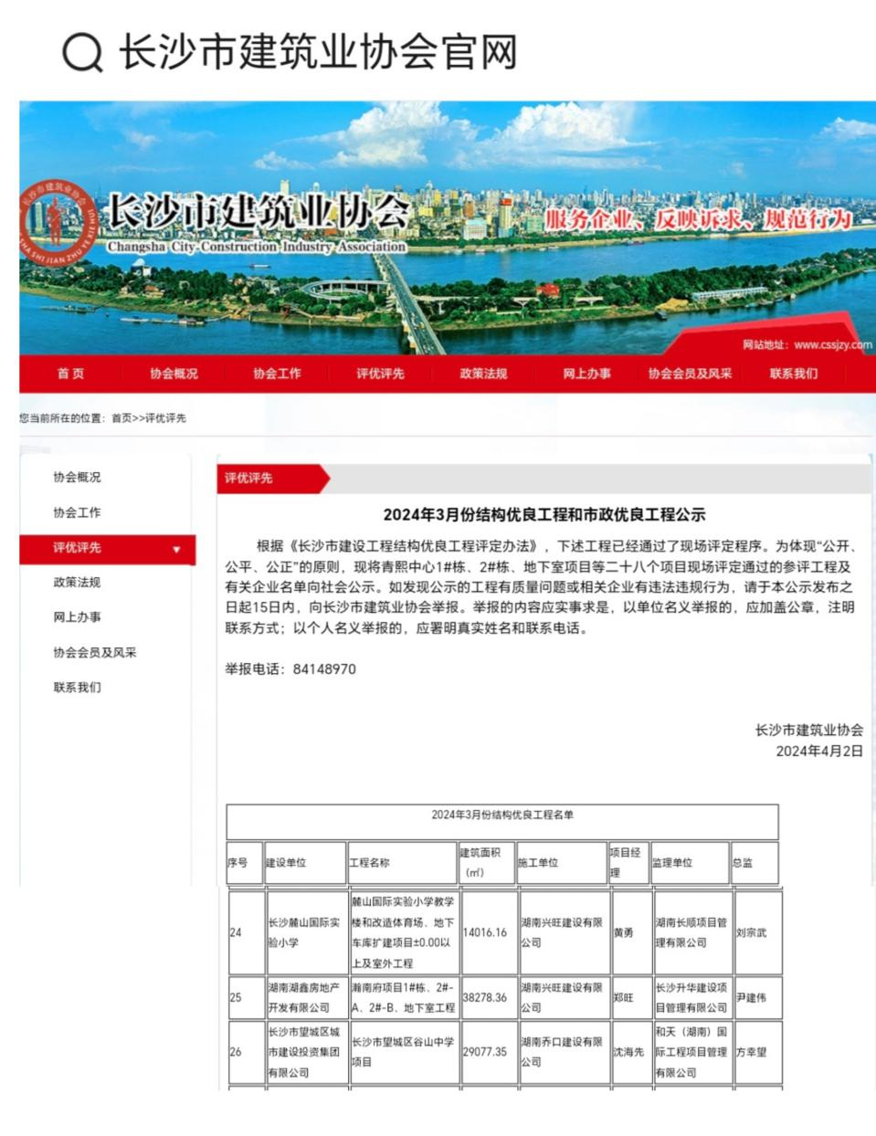 2 | 结构优良工程 | 2024 | 长沙市建筑业协会 |
