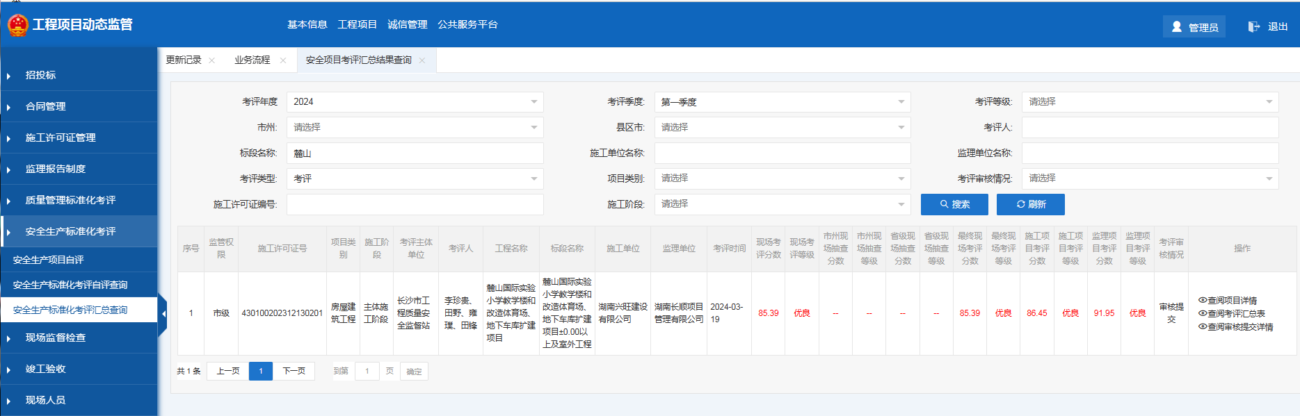 1 | 2024年一季度安全标准化考评优良 | 2024 | 长沙市住建局 |